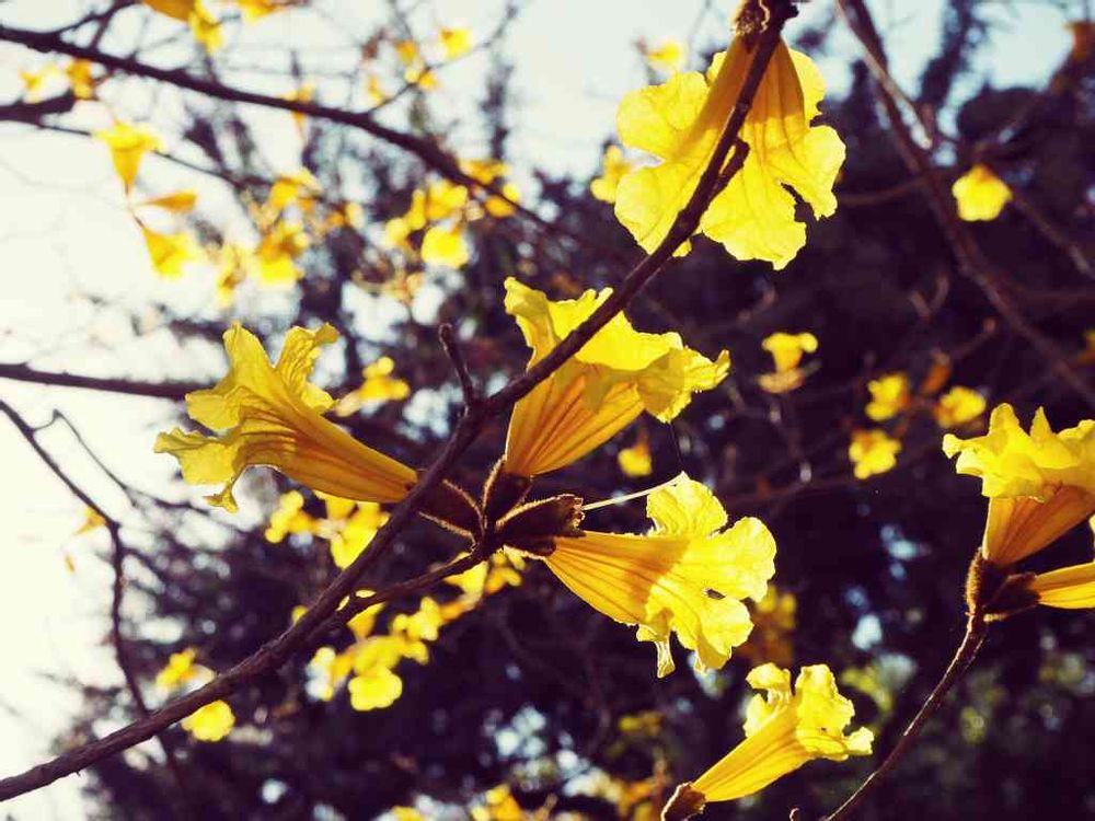 木に咲いてて、下にもたくさん落ちてて黄色が発光してるみたいに鮮やか