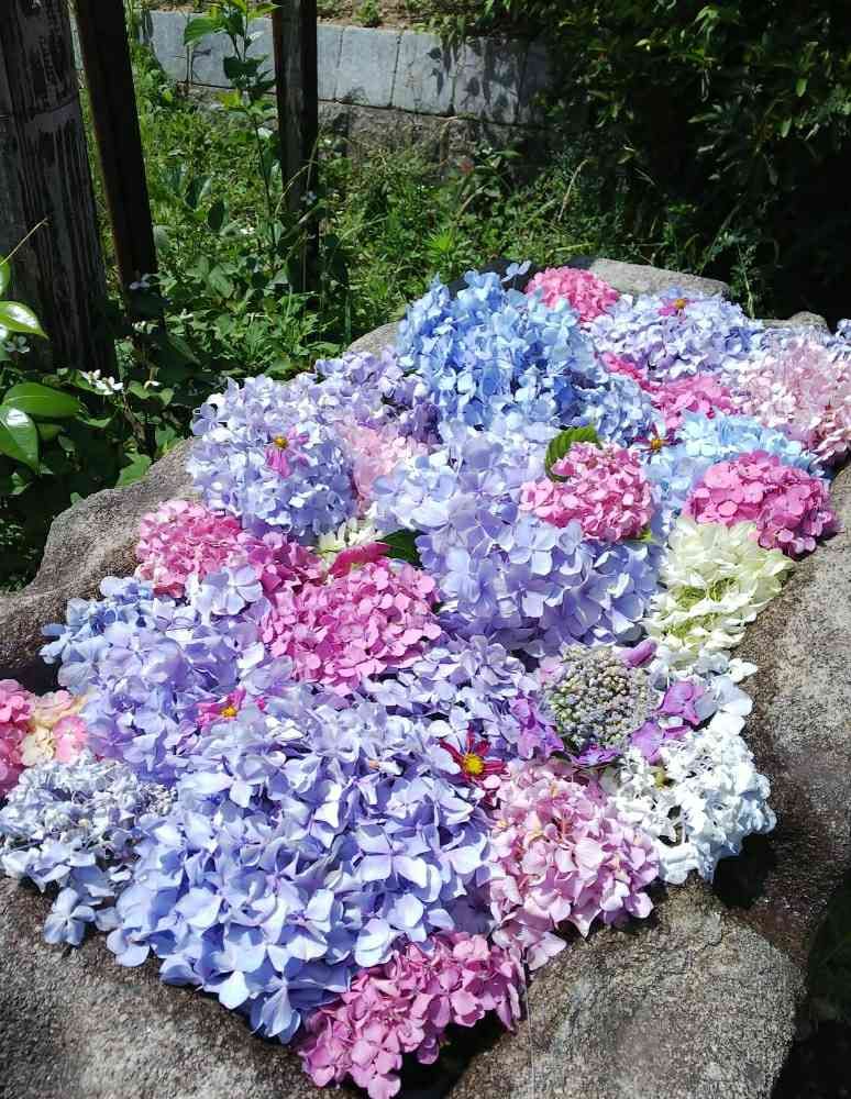 手水鉢に花を浮かべるなんて、お洒落ですよね~❤誰が始めたんだろ🎵