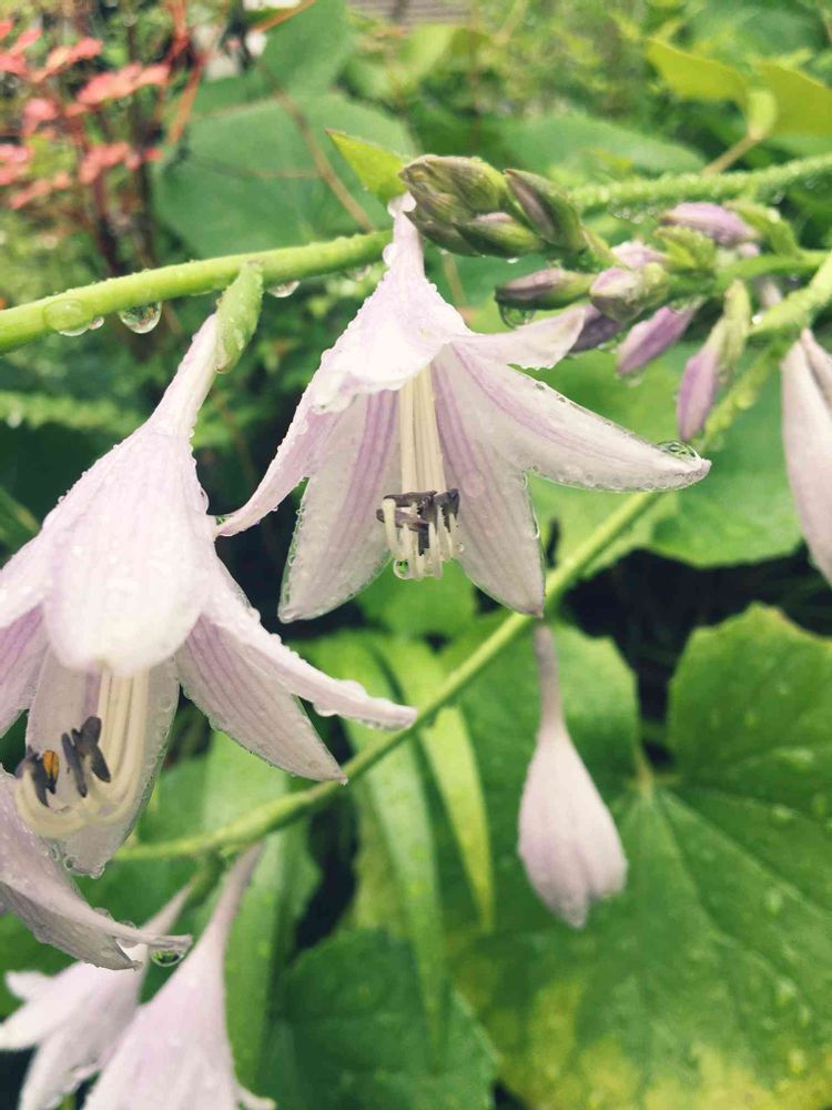 ギボウシです✨今は、茎が長くて雨も降るせいか下に向かって咲いています😄☔️