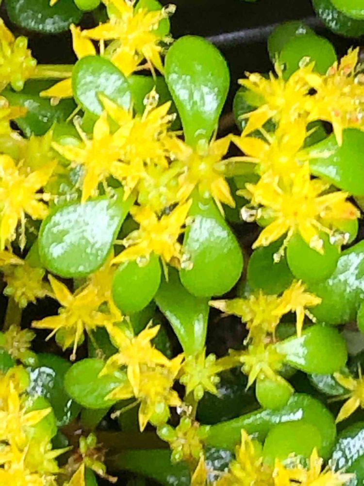 雨に濡れた小さな可愛いい、セダム達の花が咲いています🌼