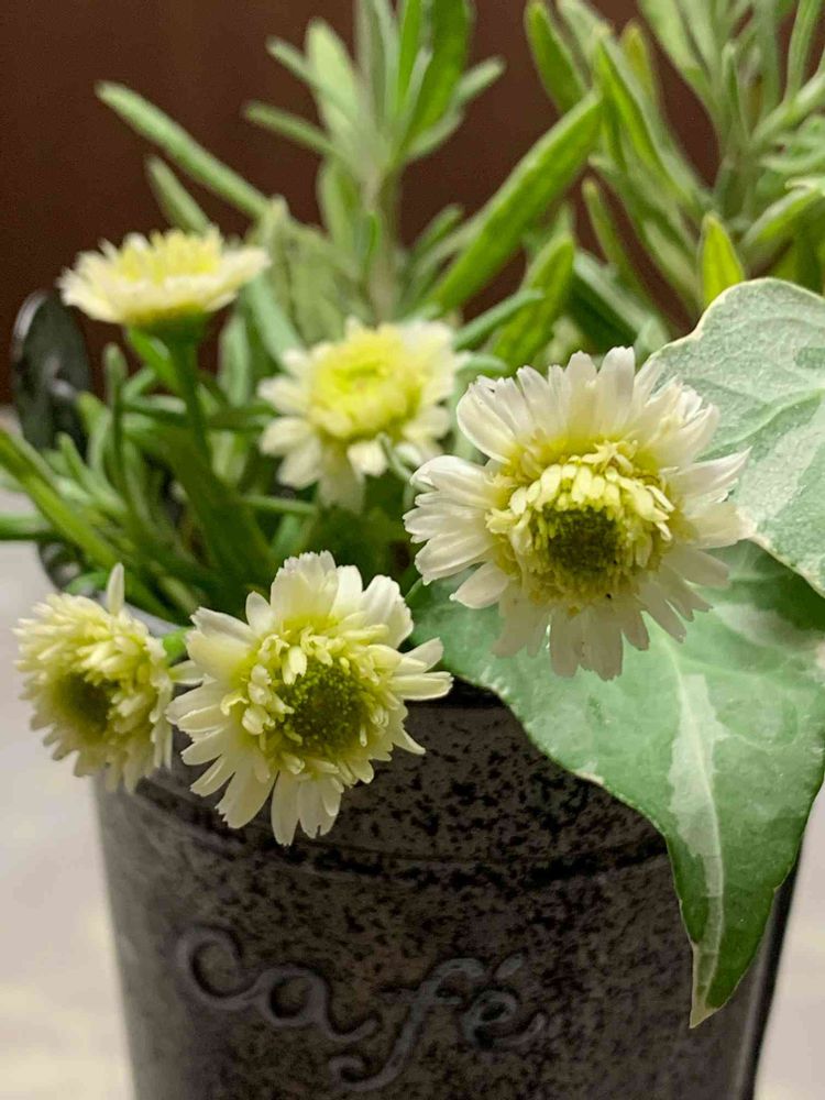 後ろは、挿木用に活けてたラベンダーの葉です🌿