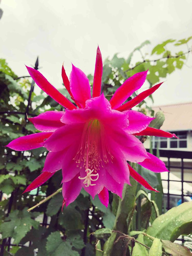 雨上がりの朝 クジャクサボテンが咲きました