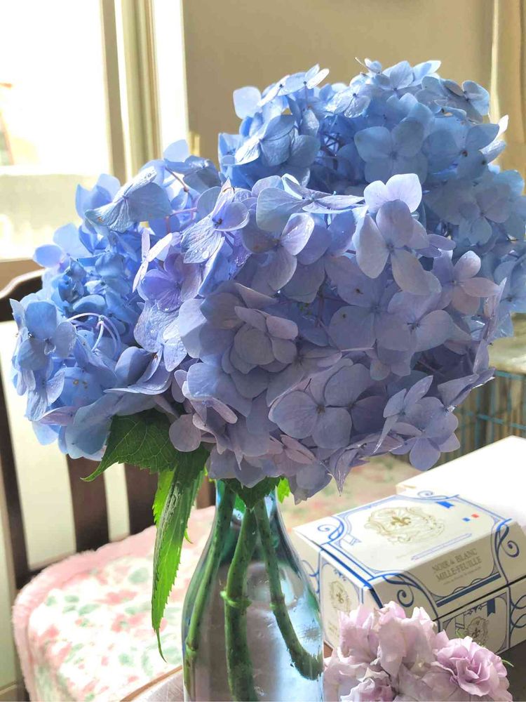 日陰の挿し木の紫陽花の中で、きれいにブルーになってる花をカットしてきました( ◜◡^)☂️っ✂︎ஐ❁ஐ