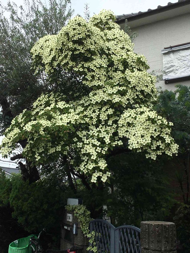 ご近所さんのヤマボウシ(山法師)の花がいっぱい咲いています。