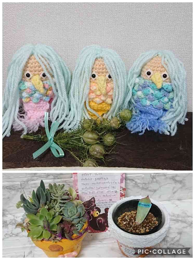 GSやインスタで見て 一目惚れ✨😍✨して あきさんにお願いしたアマビエたん💞が 多肉のカット苗や珈琲と共にわが家へ🏡