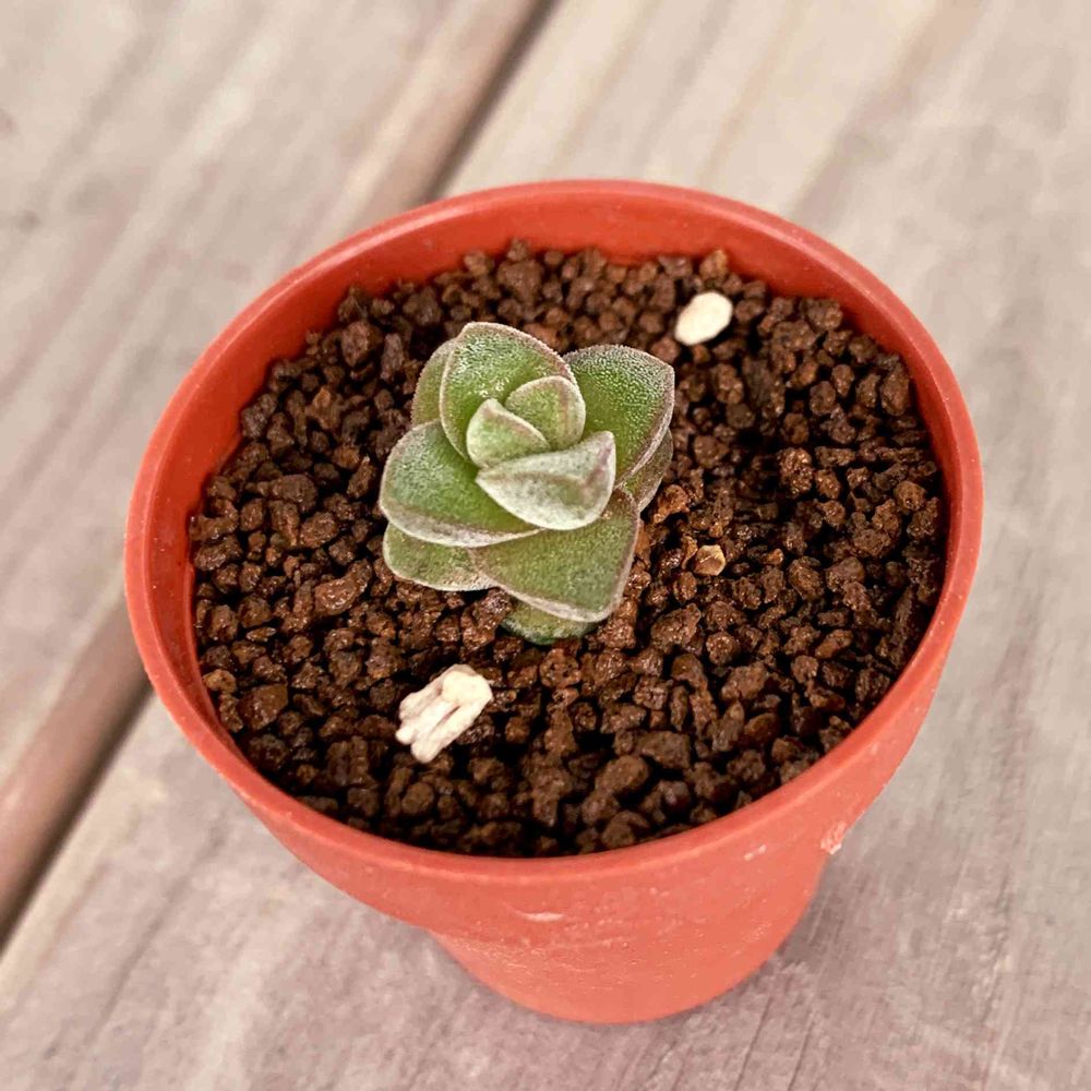 葉挿しから独り立ちした紀ノ川 ゆっくり育ち人差し指の先くらいの大きさになっている🌱