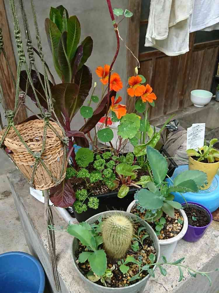 ナスタチウムさんの足下にパセリさんが🤤