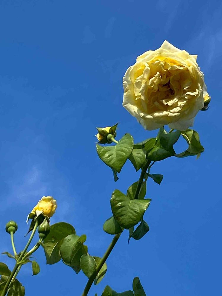 小さな庭,『バラとクレマチス』フォトコン,青空の中への投稿画像