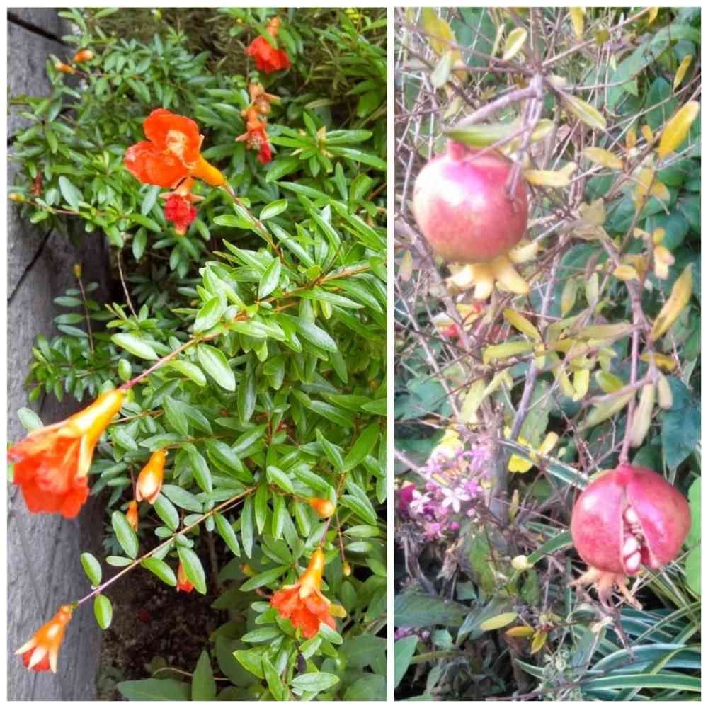 オレンジ色のハナザクロの花と秋の実、秋には本物のザクロに似た小さな可愛い実がなります💕