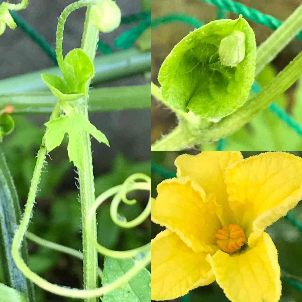 椿さんのオススメのゴーヤ、育てました。蕾の時の背中のマントがいいね!
