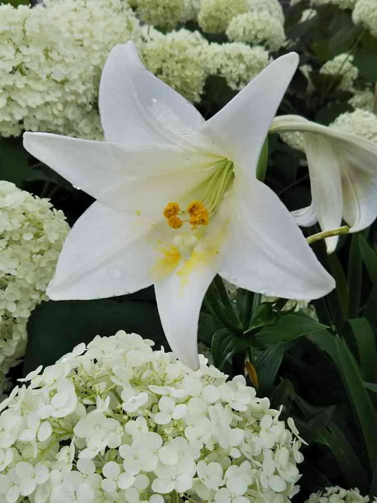 白いユリのお花も咲いていて、白いお花の共演、清楚でいいですね✨