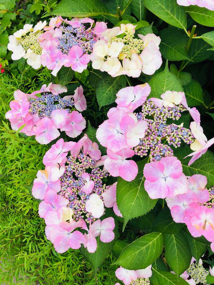 仕事の帰り道のお寺さんの傍らに咲いていた、ピンクのガクアジサイさん。(´∀`*)
