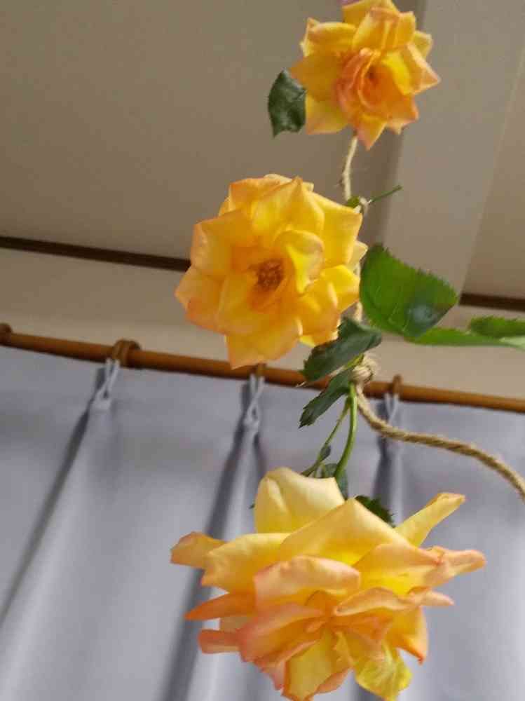 サハラ'98の2番花をドライフラワーに➰秋に咲いてくれるまで、ドライで楽しみます🥰黒星病で1番花は小さかったですが、今度は大きく咲いてくれました😃