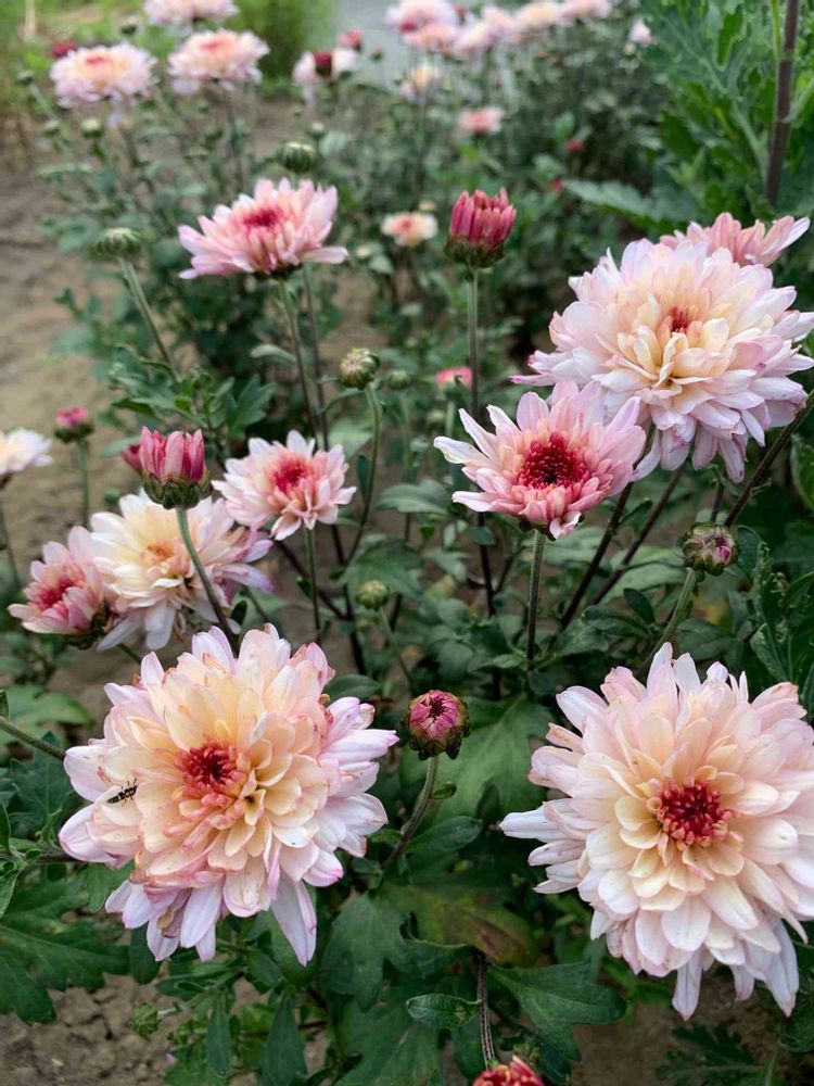 早く咲く菊だよと4月頃いただいた菊がもう咲いた。8月くらいに咲くのかと思ってたから嬉しい😃ただ摘心したのがいけなかったのか背が低い😅これはスプレーマム?菊好きなんだけど種類がよくわからない