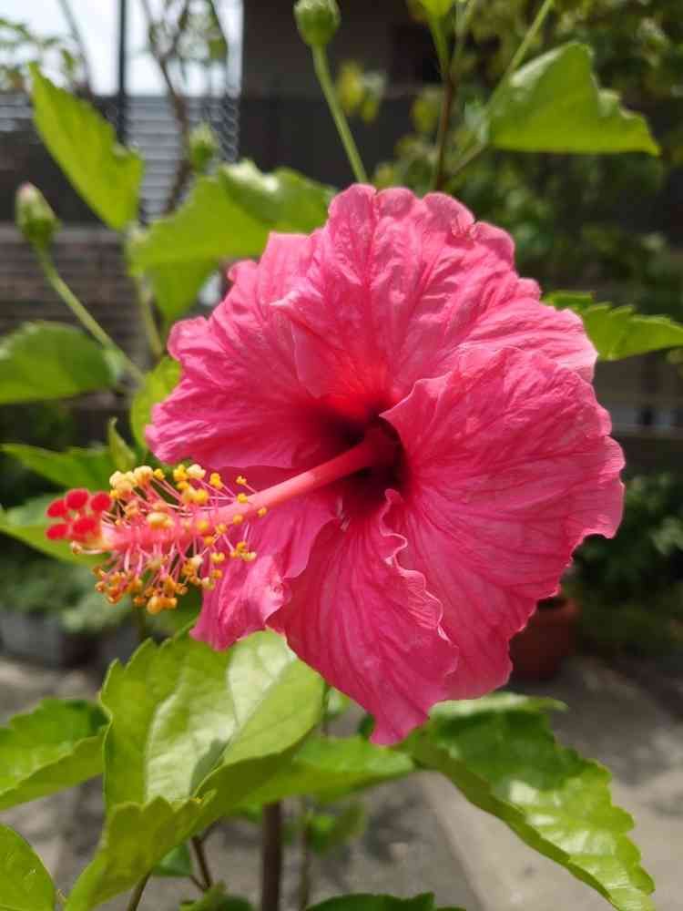 梅雨の中休み、今年初の濃いピンクが咲きました🌺ちょっとまだ小さめのお花…今後に期待しま〜す✨