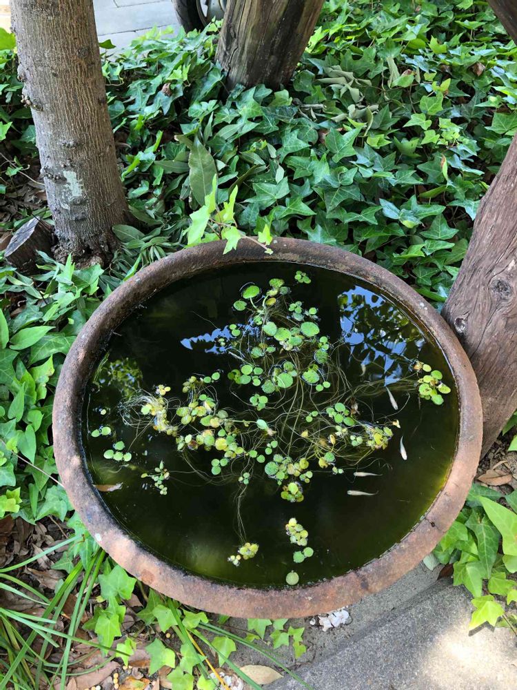メダカのかめに、ホテイアオイの代わりに新しく浮草を兄からもらい浮かべました😊