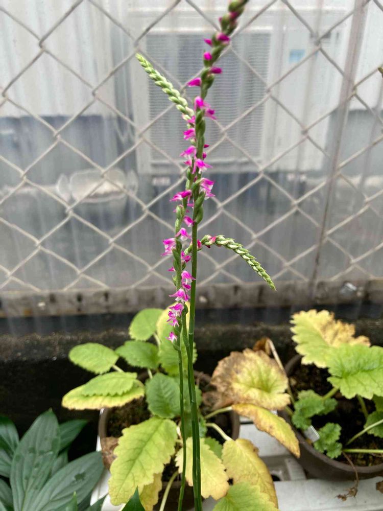 ネジバナ咲きました🌸後ろの枯れた🌱日本桜草😰