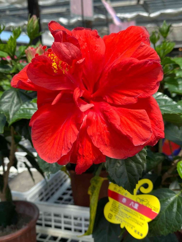 お出かけ先,ハイビスカスの赤八重,なばなの里の花市場の投稿画像