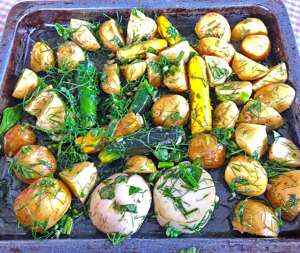 ぜひぜひ〜オイル、ニンニク、ハーブ、お塩混ぜ混ぜしてオーブンへ❤️
