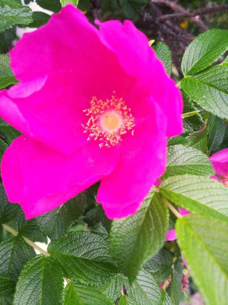 ハマナスこんな鮮やかな色なんですね。いい匂いもするんですね。皆さん毎年花がさくのを待ちわびていることでしょうね。