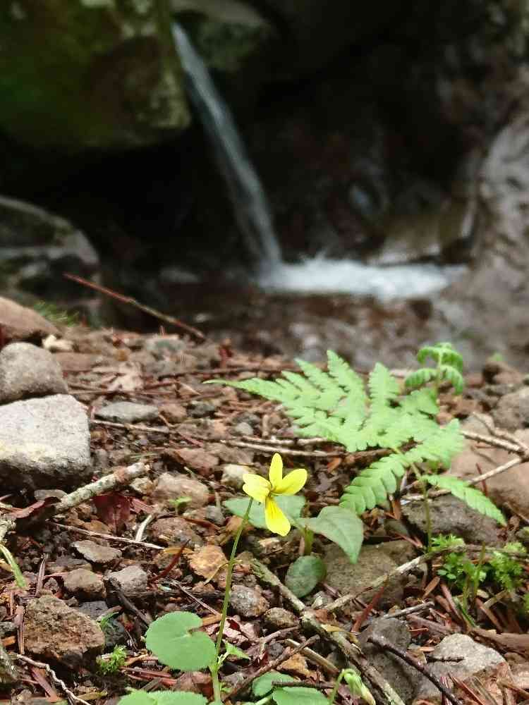 黄色いスミレと小さな滝💕