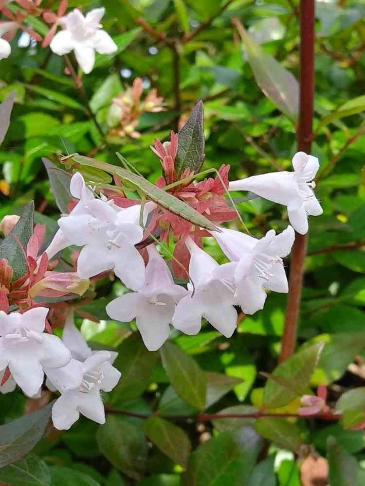 アベリアのアップが撮りたかったんですが、たまたまカマキリさんがいたのでパチリ📷❗