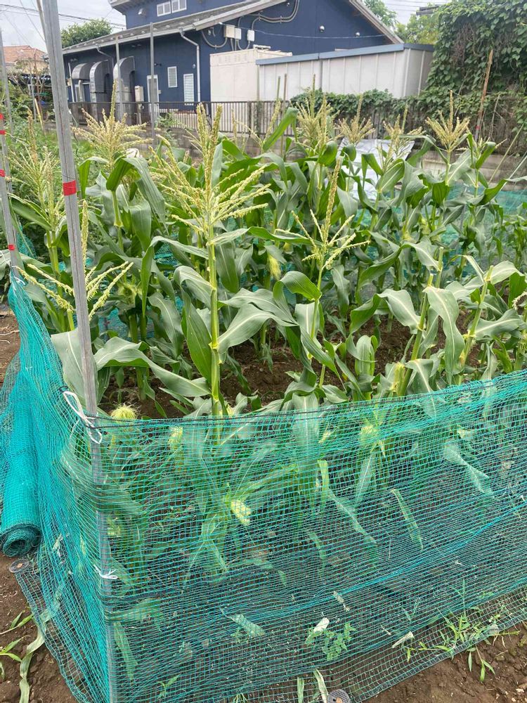 トウモロコシの害獣対策完了しましたよ。✌️