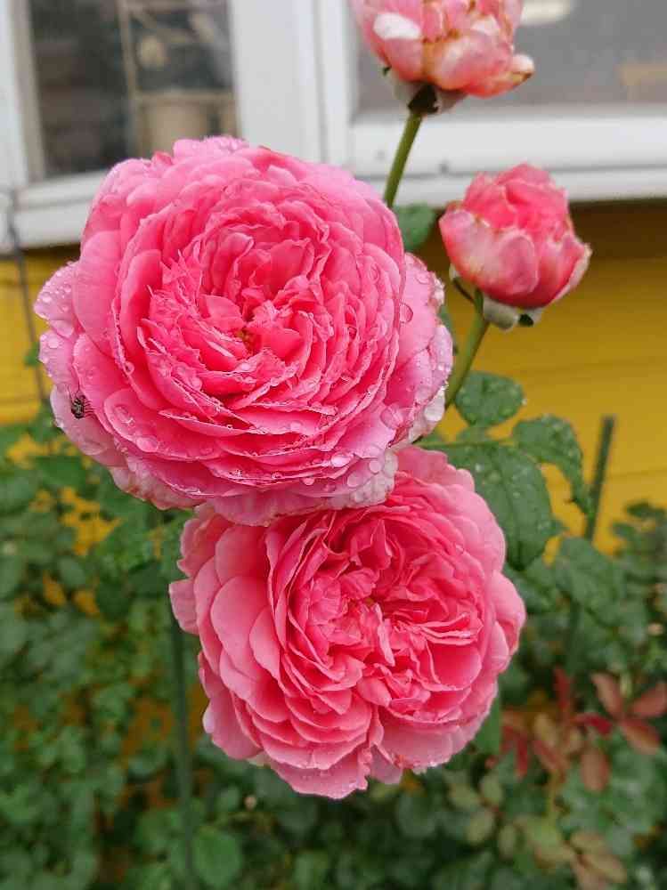 またすぐ咲きますよ🎵 右下の赤い枝は一番花のカットしたところからの芽よ🎵