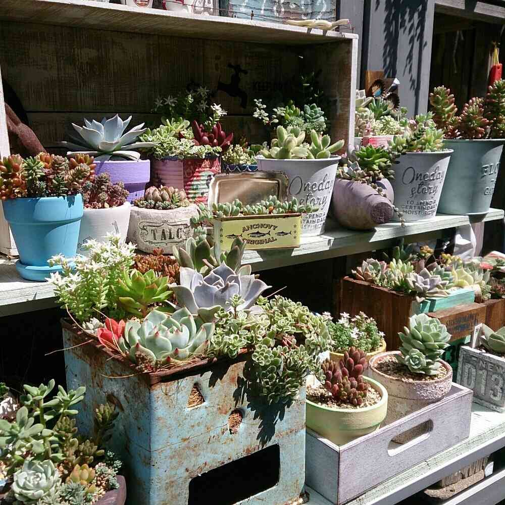 多肉のカラフルさ可愛さに夢中😍 リメ鉢作りも楽しんでます😊 リメ鉢はInstagramにてオーダーお受けしてます☺️