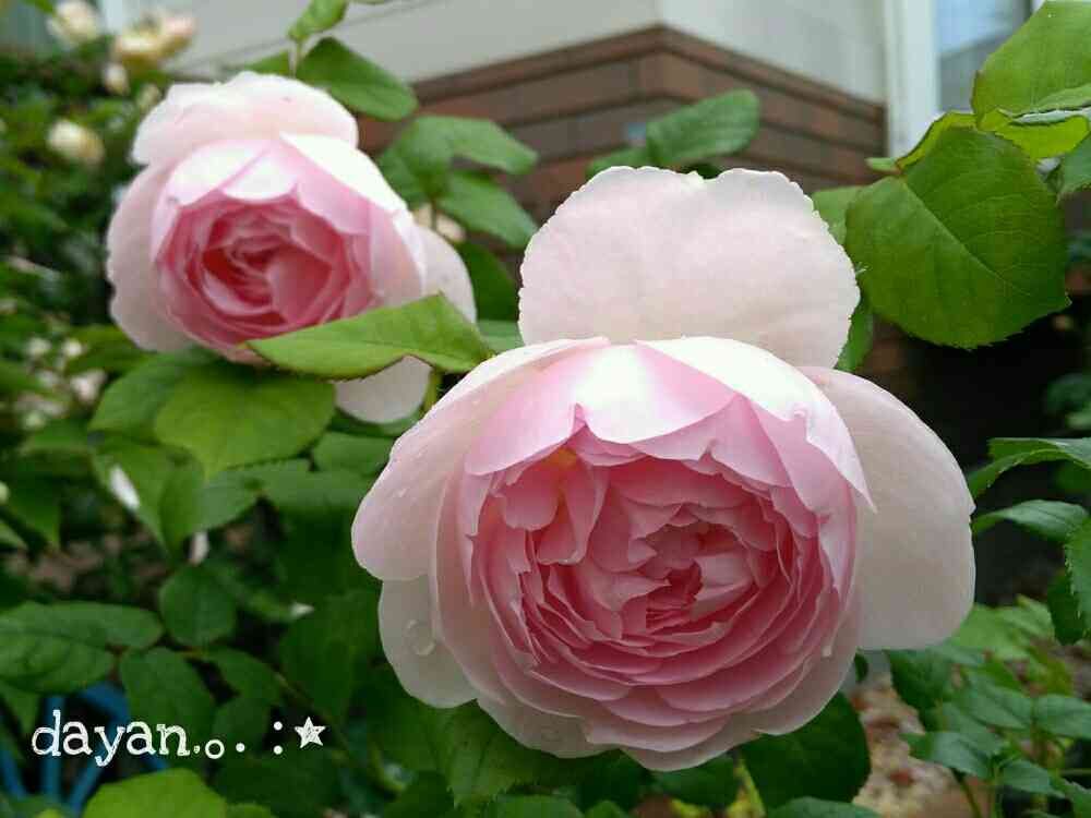 ずっと鉢植えでしたが、去年地植えしたのでまだ枝が細くて…お花咲いたら傾いてしまったので、紐で縛ってあります😅💦