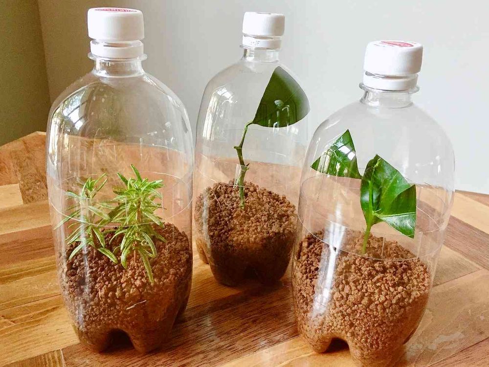たまたま手元に、お米の保管に使おうと集めていたペットボトルがたくさんあったのでこちらでやってみました^_^
