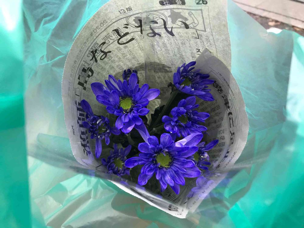 新聞紙に包まれたお花