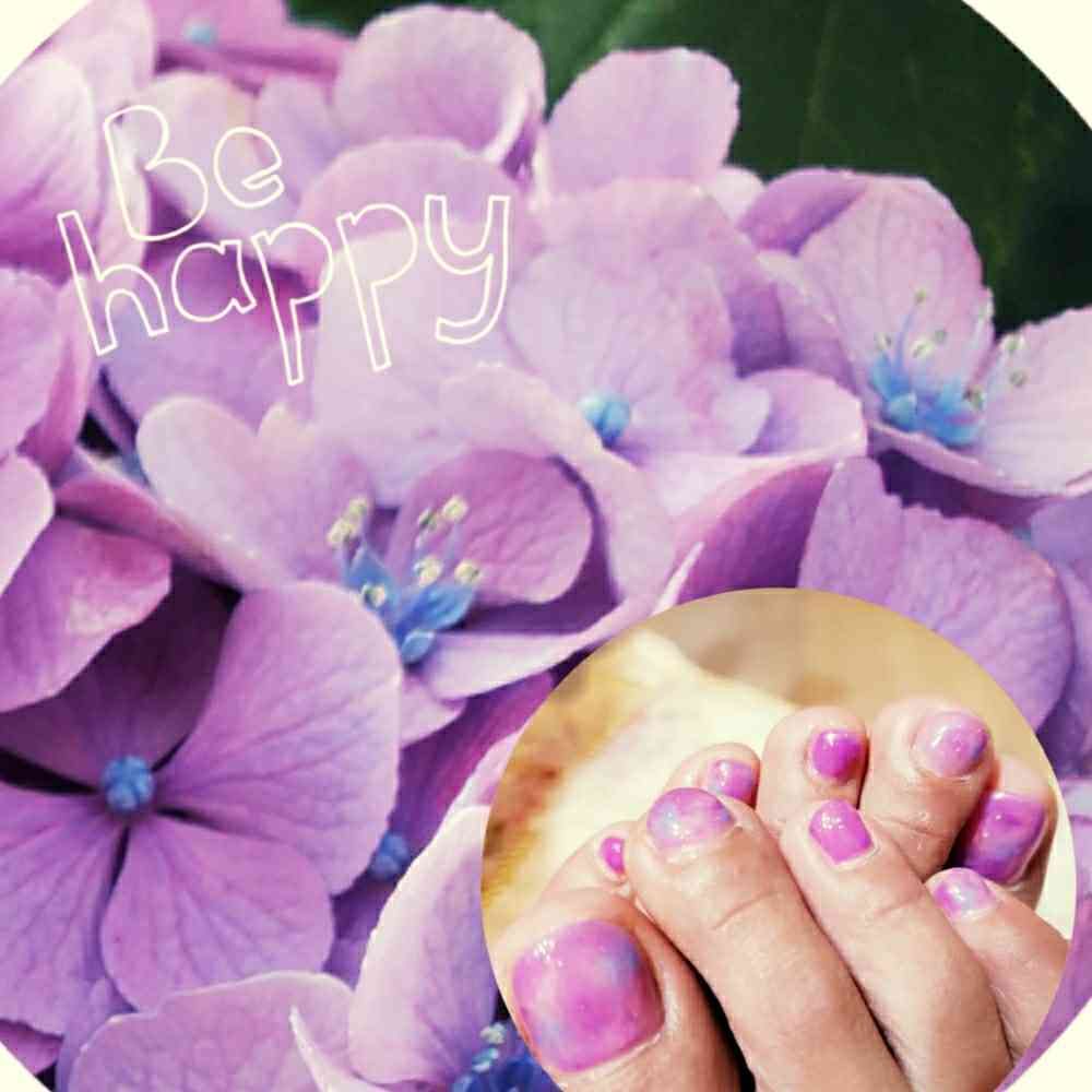 手よりも足の方が紫陽花の雰囲気に近くなりました💓理想の鮮やか色に成功です😌