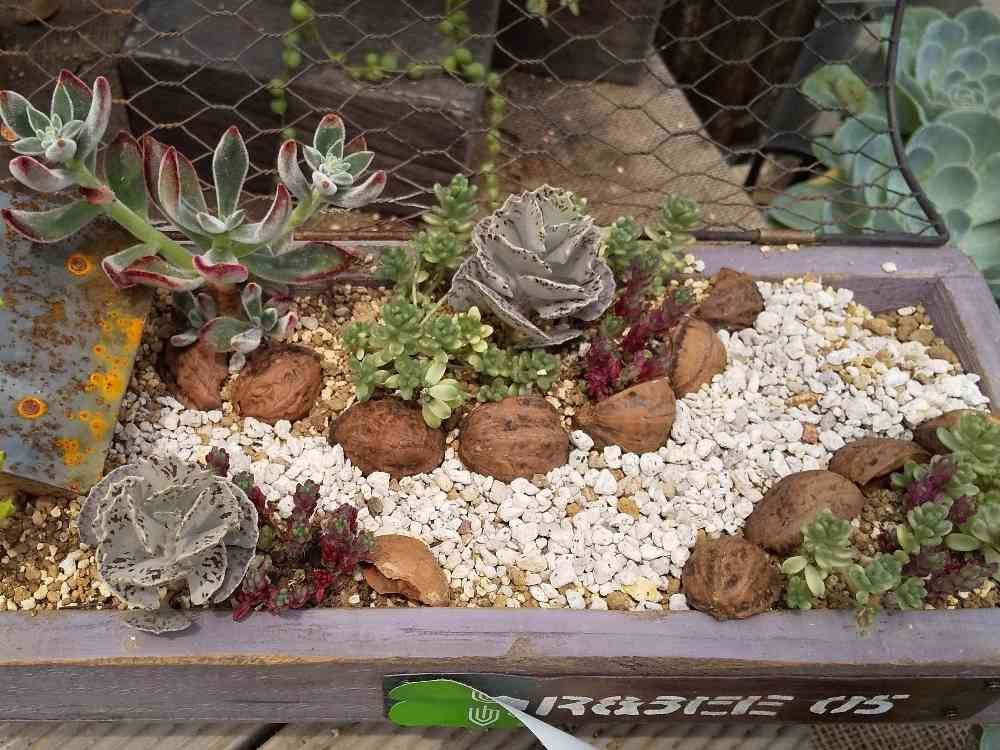 多肉ちゃんもありました😃私も頑張って植えなきゃ🎵茶色は石だと思いきやクルミでしたよ😃