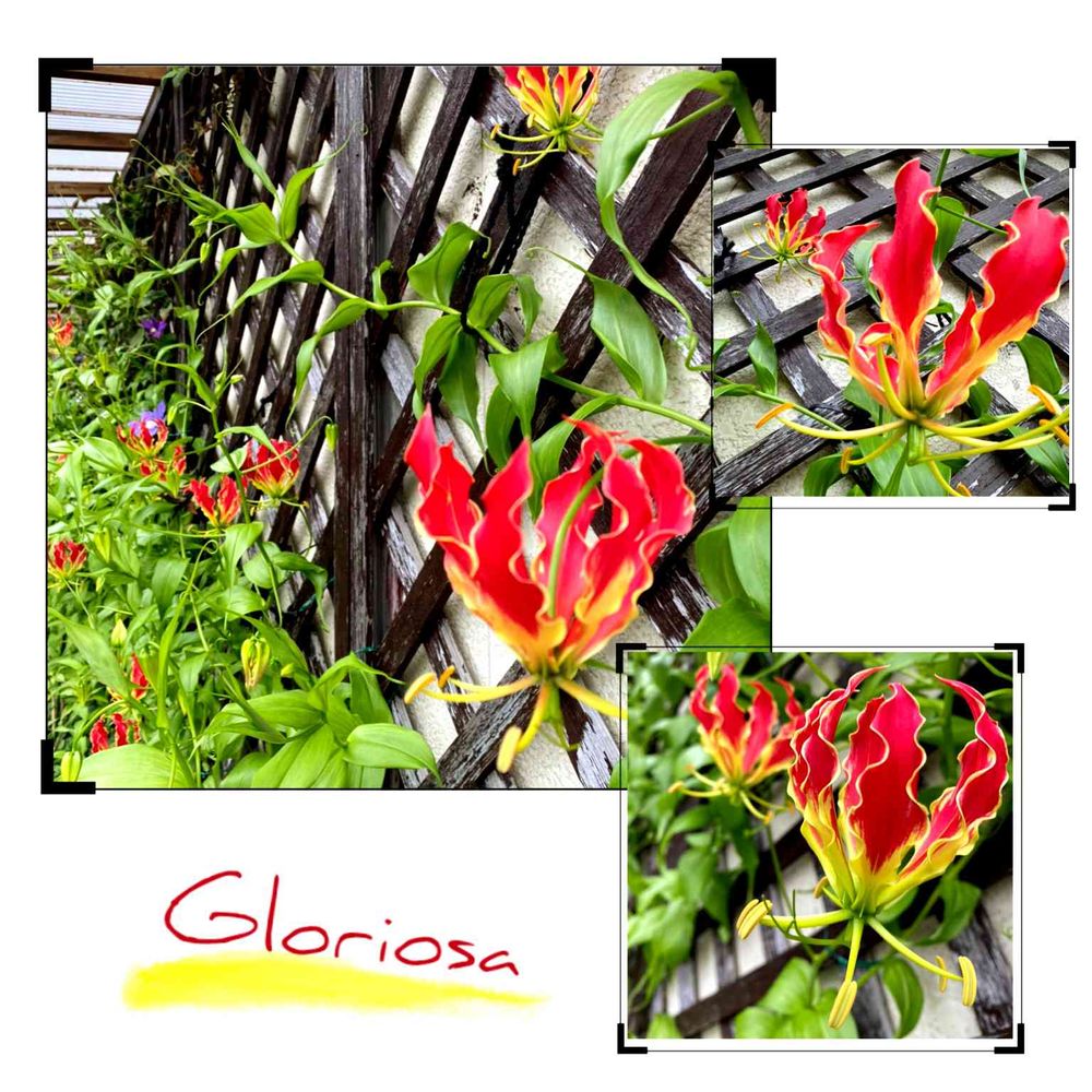 グロリオサは温室で育っているイメージと勝手に思い込んでいたので、お庭で育つと知りびっくりでした。