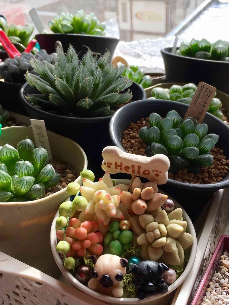 樹脂粘土おパグと多肉