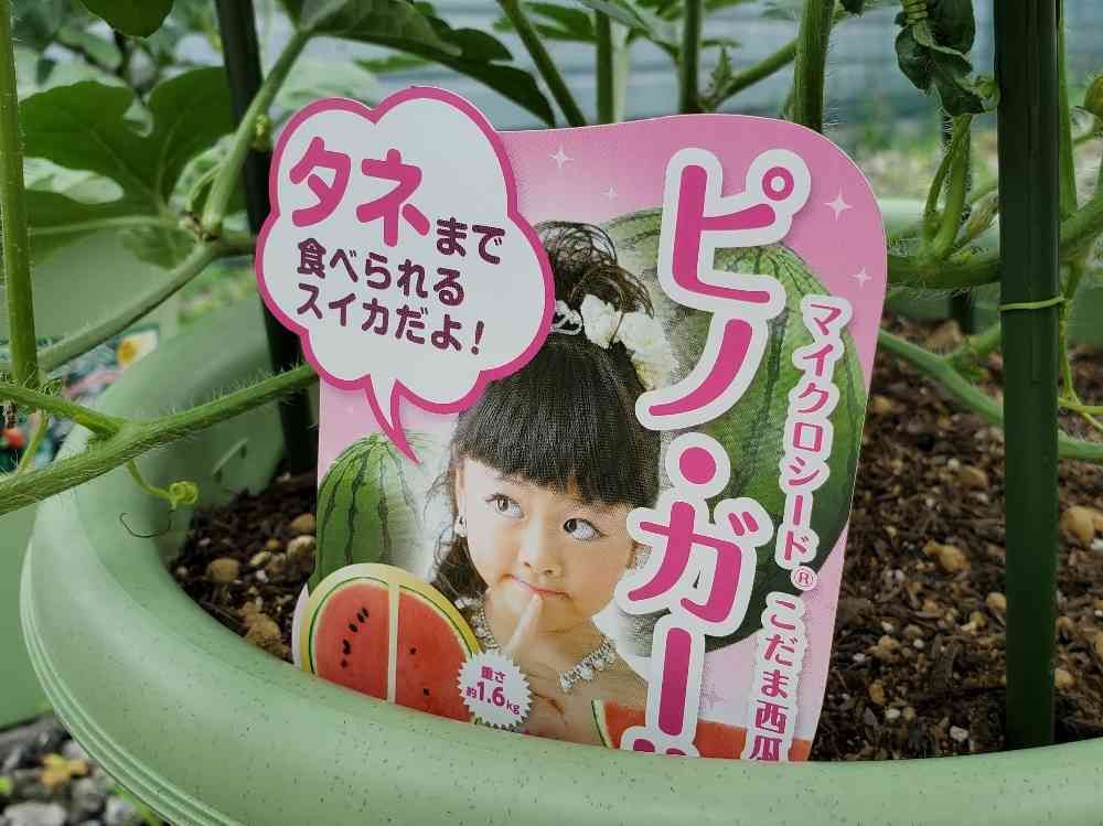 盛夏にはグリーンカーテンの中に可愛い小玉スイカがぶら下がっているのが見られそうです...(^_^);。