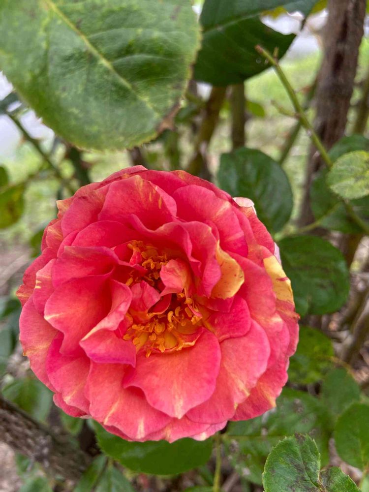 サーモンピンクの、様変わりが、綺麗薔薇。