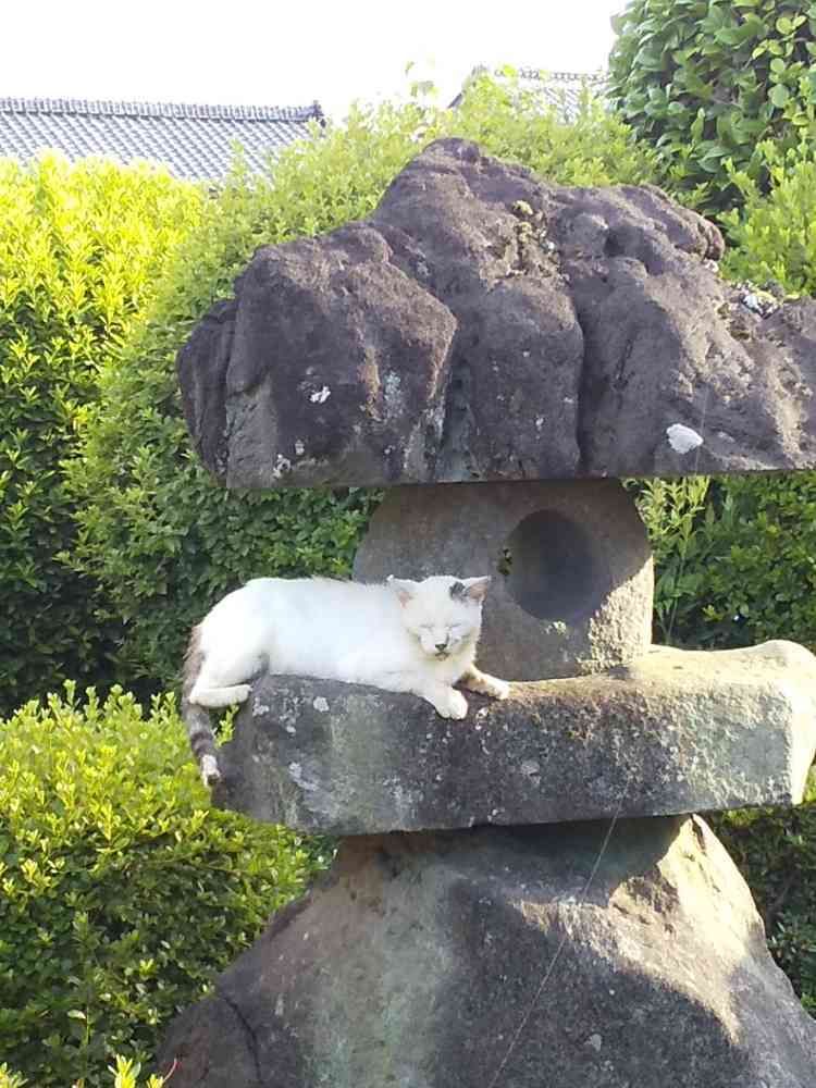 我が家の石燈籠でくつろぐ野良猫シーさん。
