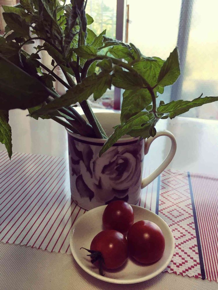 お久しぶりです。実家のミニトマト、初採り。そして脇芽もメネデール入れて、根出し準備。楽しみ〜