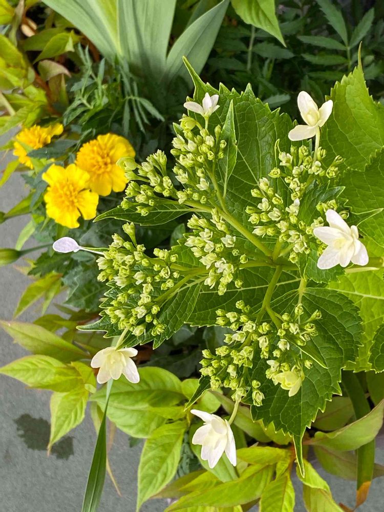 玄関,マリーゴールド,アジサイ 墨田の花火の投稿画像