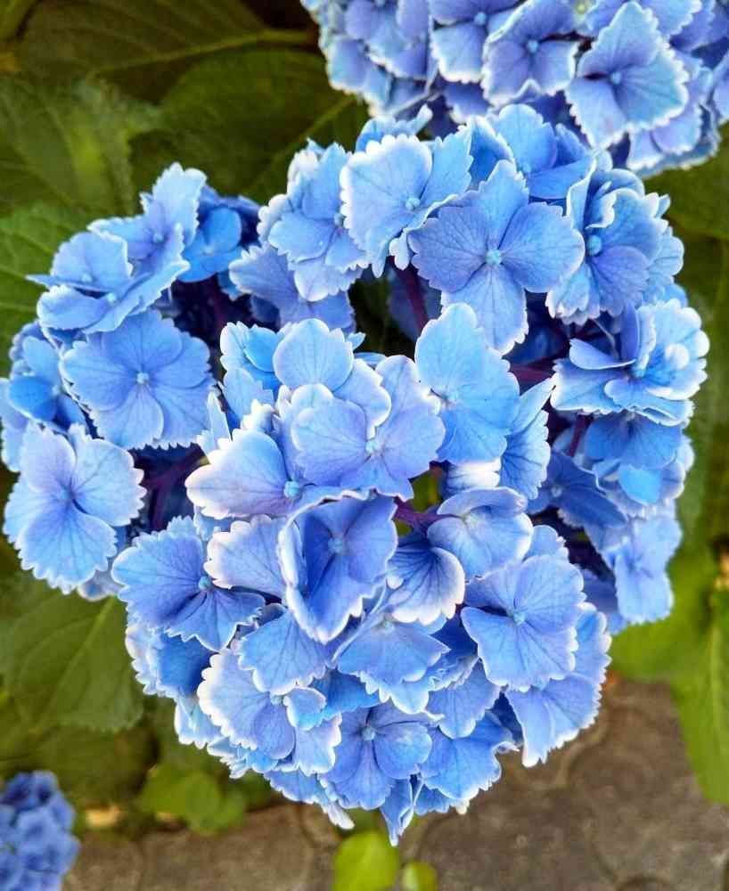 花のまわりに白い縁取りのある水色の紫陽花の花、綺麗です💕