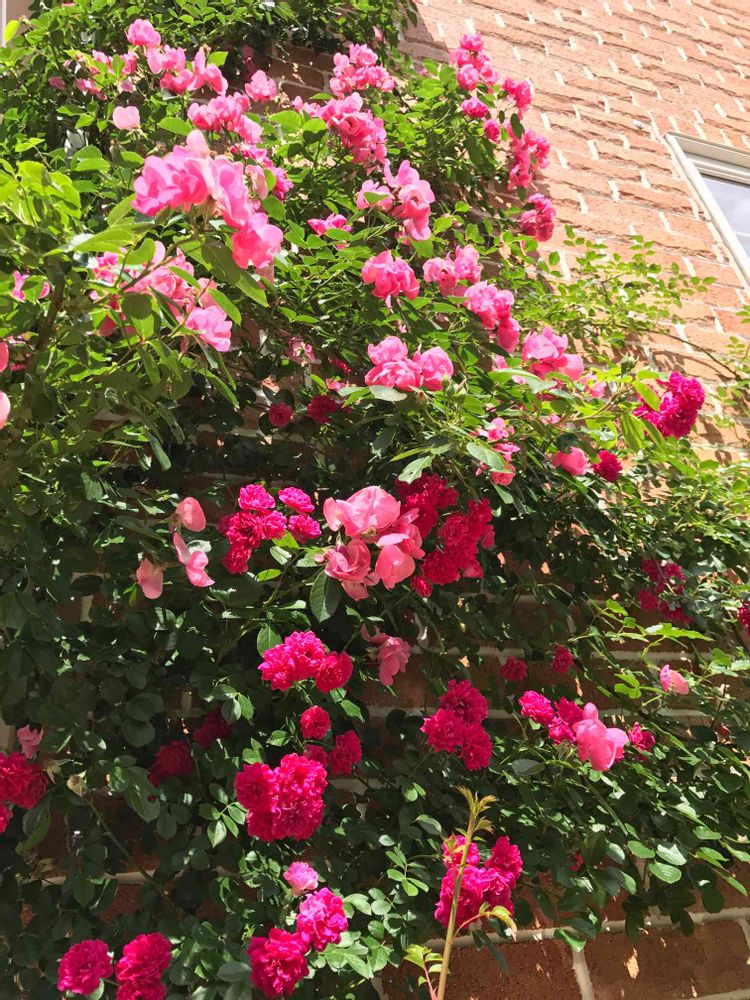 こんばんは😊よろしくお願いします😁✨アンジェラはありきたりですが壁面を飾るには1番だと思います👍🏻しかも新苗から3年でこれだけ大きくなったので😁今年も元気なシュートがたくさん出ています🌹