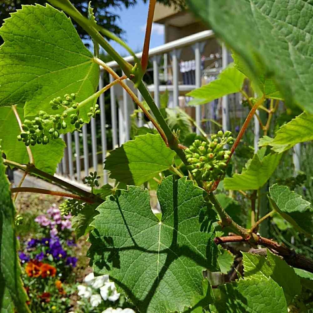 去年は幹を育てるのがねらいで、ブドウの実はとっても酸っぱかったけど💦今年はどうかな💓