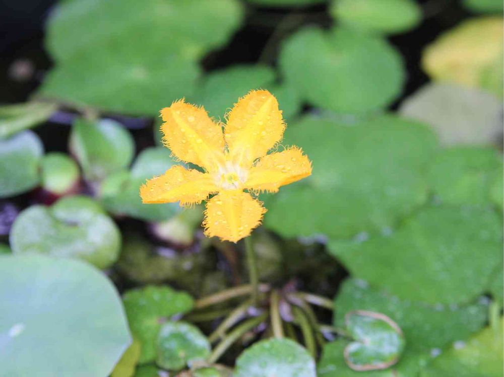 南瓜みたいな黄色い花が可愛くて、蓮と一緒に栽培中。発育が旺盛で、あっという間にあさざの葉っぱで水面がいっぱいになってしまった😵