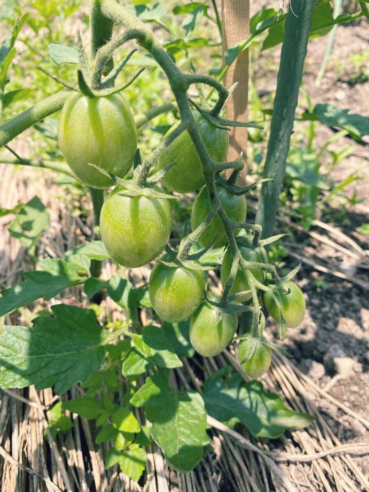 友人の借りてる畑で作ってる野菜、プチトマトのアイコです🍅鈴なり。でも人参は、動物にやられて、全滅、ズッキーニとカボチャも虫にやられて、成長してません😅