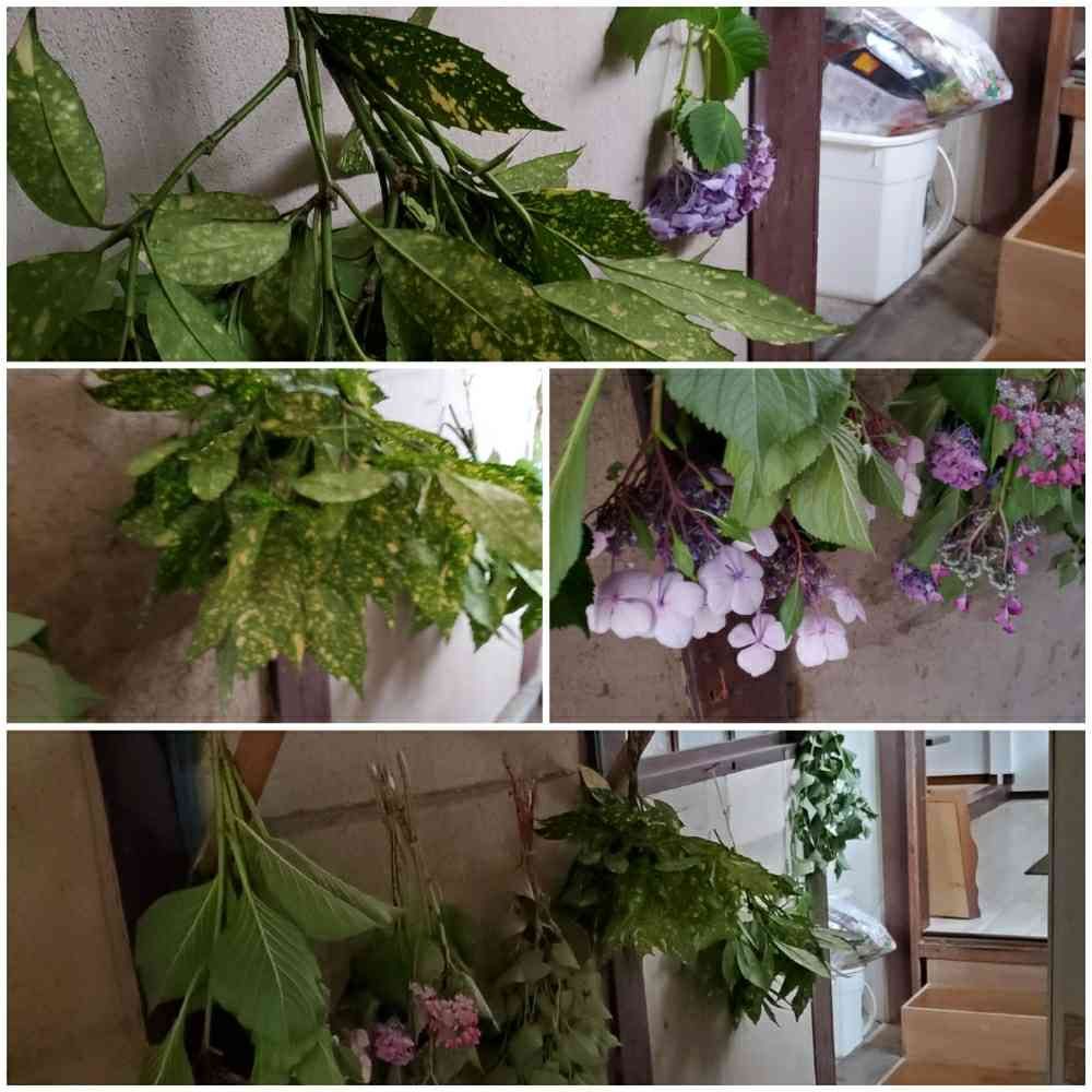 朝涼しい内に紫陽花、ドクダミ、斑入り青木、など切ってドライフラワーに( ´ ▽ ` )