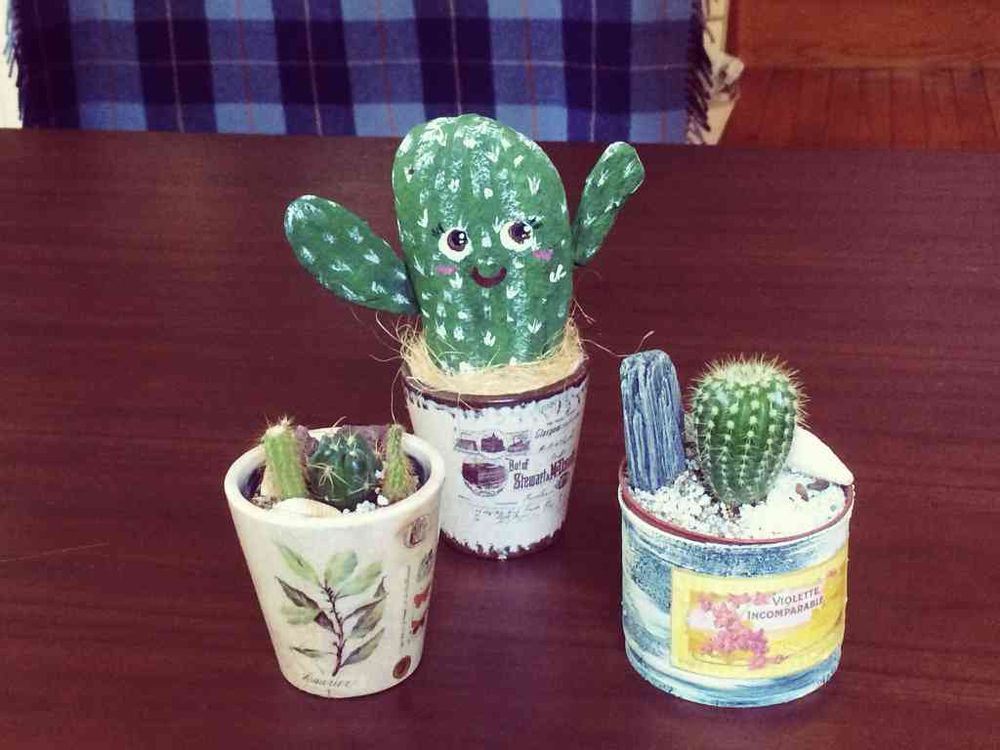 先日出かけた綺麗な河原で拾って来た石にペイントしたサボちゃんですよ〜!