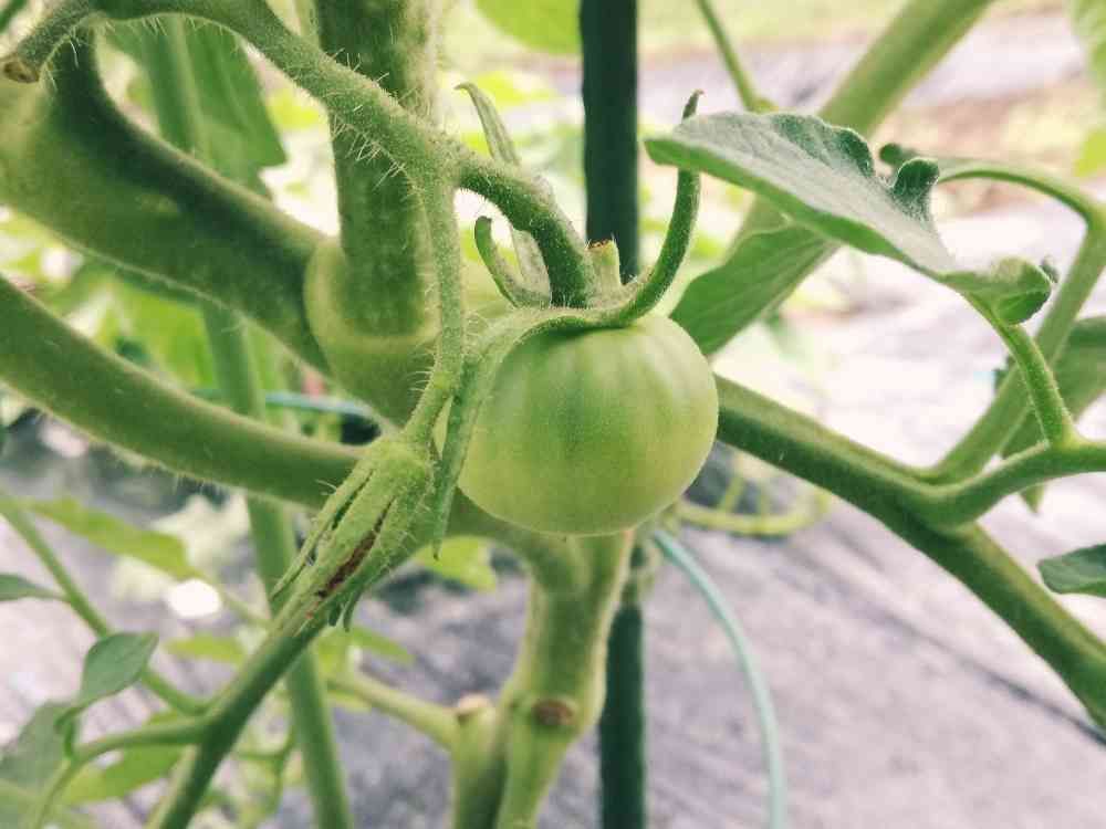 第一果は、雨か何かで残念ながら落ちてしまったのですが、2個目のトマトの実がここまで大きくなってくれました!