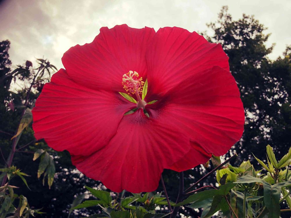 燃える太陽のごとく、鮮烈な赤花を咲かせます。
